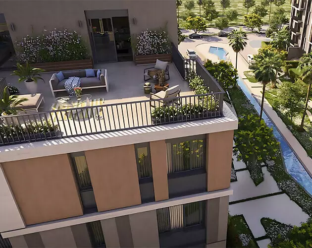 أما عن باقي المساحة 78% فقد تم تخصيصها للمساحات الخضراء واللاند سكيب، أثناء تنفيذ المشروع استعانت الشركة المطورة بمجموعة من كبار المهندسين والاستشاريين المعماريين، ذلك بهدف أن يتم توزيع مساحات الوحدات داخل الكمبوند بشكل متناسق، وأن تكون المسافة بين كل وحدة والثانية مناسبة حتى يكون هناك احتكاك بين السكان لسهولة التعارف والتعاون.