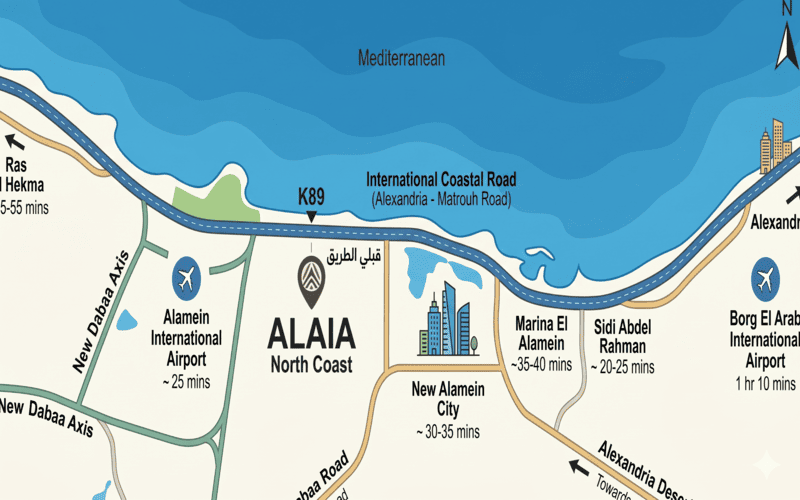 بفضل هذا التموضع الاستراتيجي، تكتسب Alaia North Coast ميزة تنافسية كبرى، حيث توفر فيها القرب الشديد من مراكز الخدمات و الترفيه الكبرى، مع الحفاظ على خصوصية المجتمع الفندقي بعيد عن صخب الطرق السريعة، و هو ما يرفع من معدلات الطلب السياحي و الاستثماري على الوحدات بشكل مستمر.