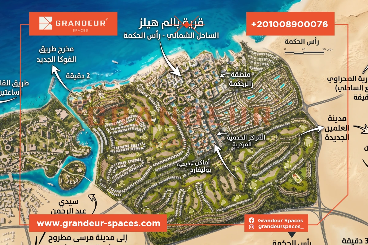 • الموقع الاستراتيجي: في قلب رأس الحكمة، وبالقرب من مطار العلمين الجديد ومحور الفوكا، مما يضمن لك سهولة الوصول وسرعة التنقل.