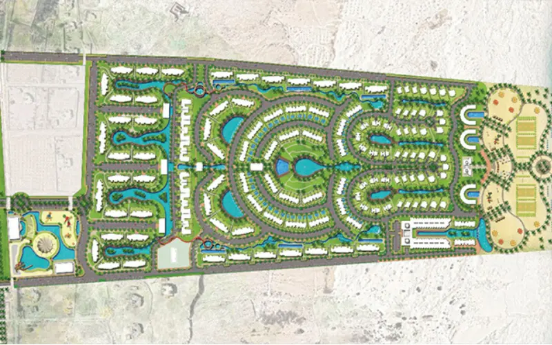 جاء تصميم القرية ليعكس مفهوم الاستجمام الحقيقي، حيث اهتمت الشركة المطورة بخلق بيئة متكاملة تساعد السكان على الاسترخاء، ويضم المشروع مساحة كبيرة من البحيرات الصناعية وحمامات السباحة تمتد على نحو 9 أفدنة، بما يضمن انتشار الإطلالات المائية داخل أغلب أرجاء القرية.
